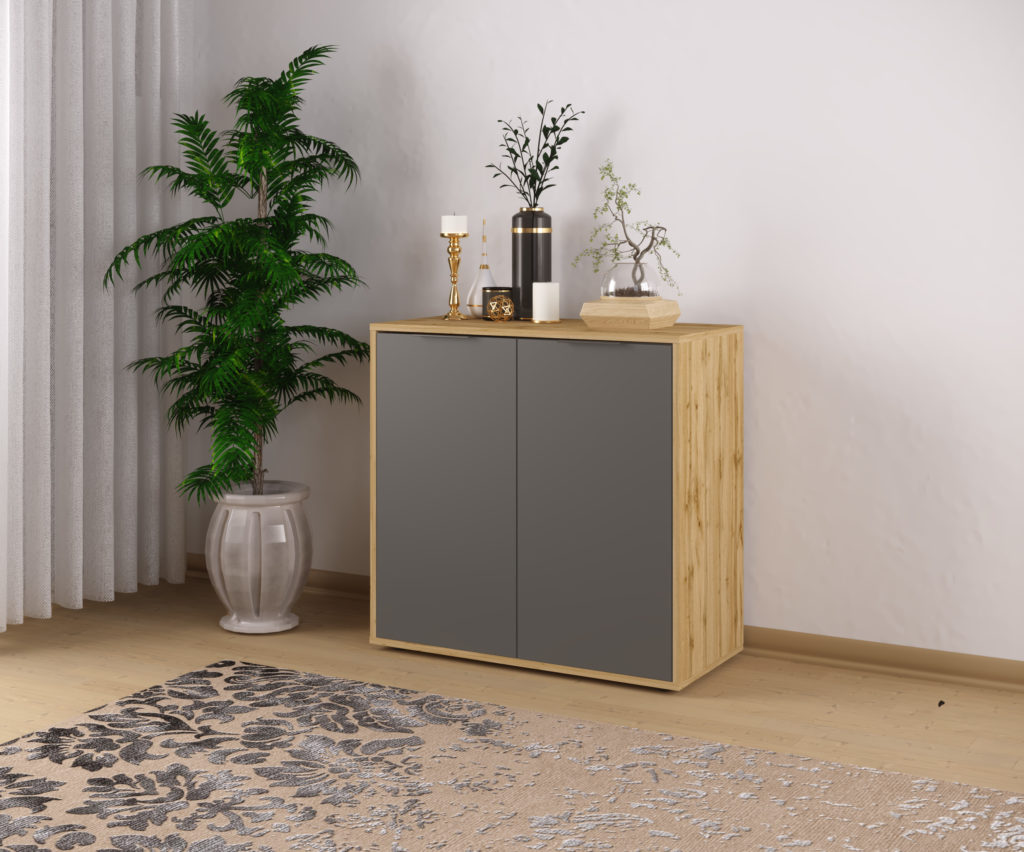 Комоди Нітро представлено у трендовому, для сучасних меблів, стилі «лофт». Вигідно підкреслена краса деревоподібної текстури яка контрастує з кольором «сірий графіт» та «білим». Корпус і фасади Нітро виготовлені з якісного ЛДСП.