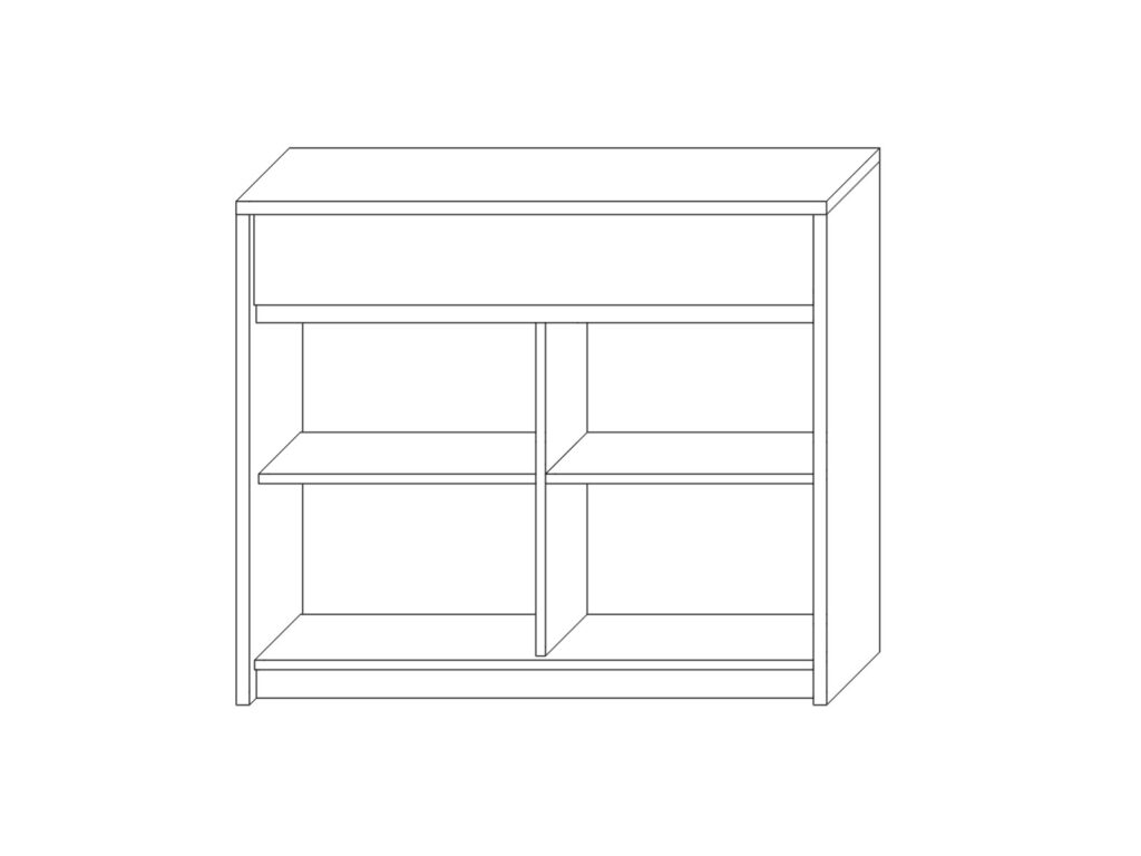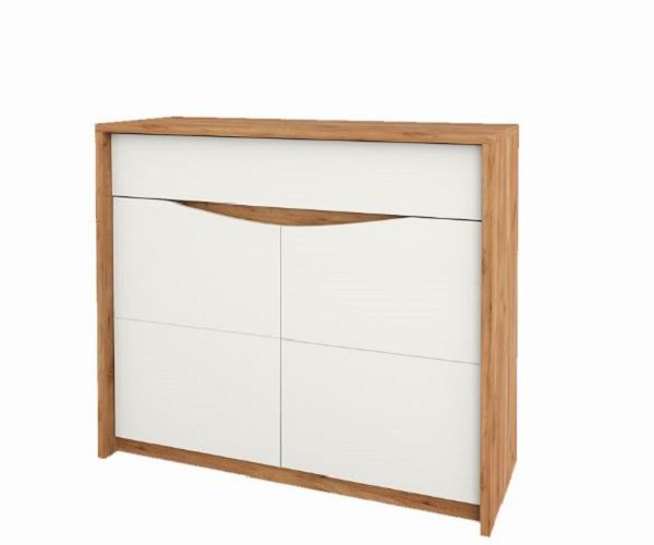 Глянцевий білий колір фасадів у поєднанні з корпусом дуб крафт табако придає кімнаті легку і затишну атмосферу.