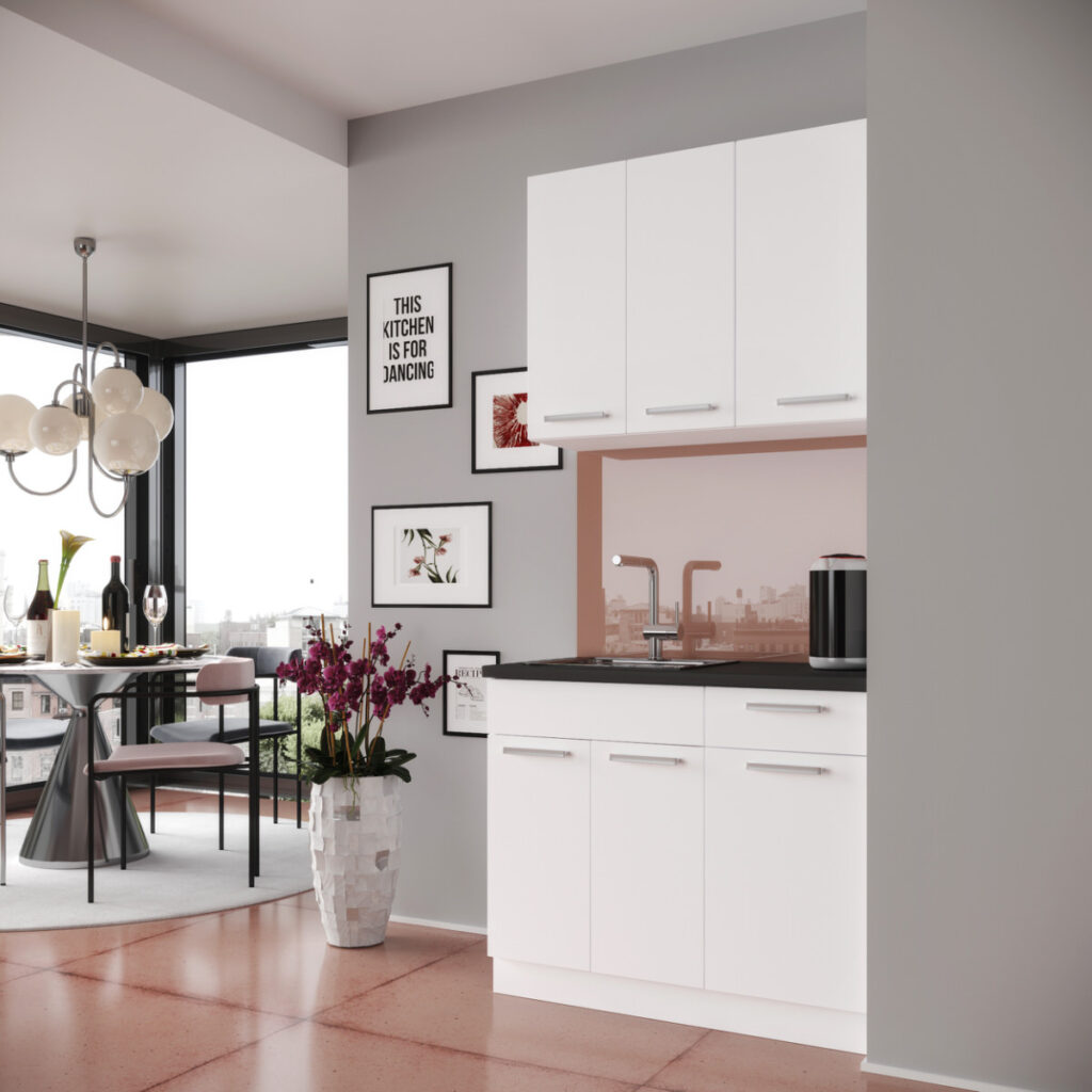 Дана кухня виготовлена у білому кольорі із якісного ЛДСП. Направляючі на шухлядах роликові. Покращене пакування, адаптоване для відправлень.