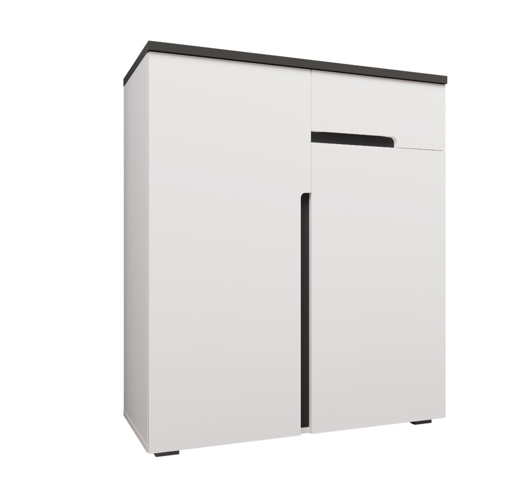 Практичний та місткий комод Джордан вдало поєднує в собі функціональність та незвичайний сміливий дизайн. Він відмінно справляється не тільки зі зберіганням речей, але й ефективно виконує естетичну функцію – ваш будинок стає ще стильнішим. Виготовлений у трендових кольорах білий/антрацит.