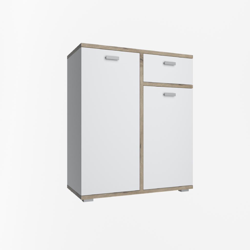 Практичний та лаконічний комод Лаціо 2Д1Ш поєднує в собі функціональність та стильний дизайн. Він відмінно справляється не тільки зі зберіганням речей, але й ефективно виконує естетичну функцію – ваш будинок стає ще затишнішим. Комод з передпокою Лаціо виконаний у трендових кольорах білий/дуб сонома. Він оснащений якісною фурнітурою.