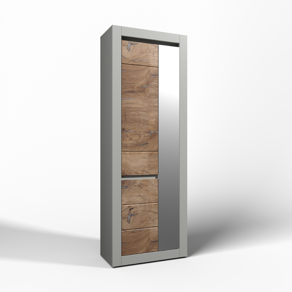 Шафа з передпокою Катанія виконана у трендових кольорах шиншила сіра/дуб флагшток, який цікаво доповнить ваш інтер”єр та розбавить монотонні кольори.