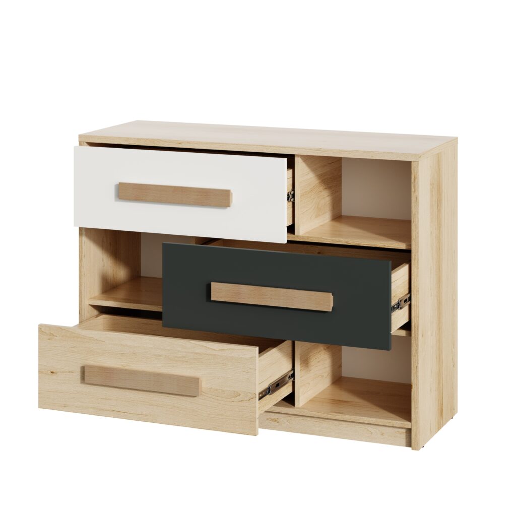 Гладкі фасади і строгі форми, зручні дерев’яні ручки в оригінальному дизайнерському рішенні – все це приверне увагу справжніх поціновувачів модних та безпечних меблів для дітей і молоді.