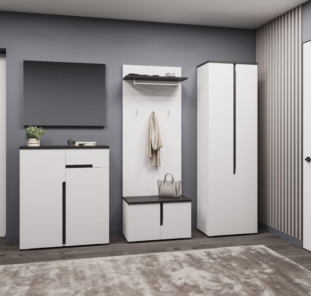 Практичний та місткий комод Джордан вдало поєднує в собі функціональність та незвичайний сміливий дизайн. Він відмінно справляється не тільки зі зберіганням речей, але й ефективно виконує естетичну функцію – ваш будинок стає ще стильнішим. Виготовлений у трендових кольорах білий/антрацит.
