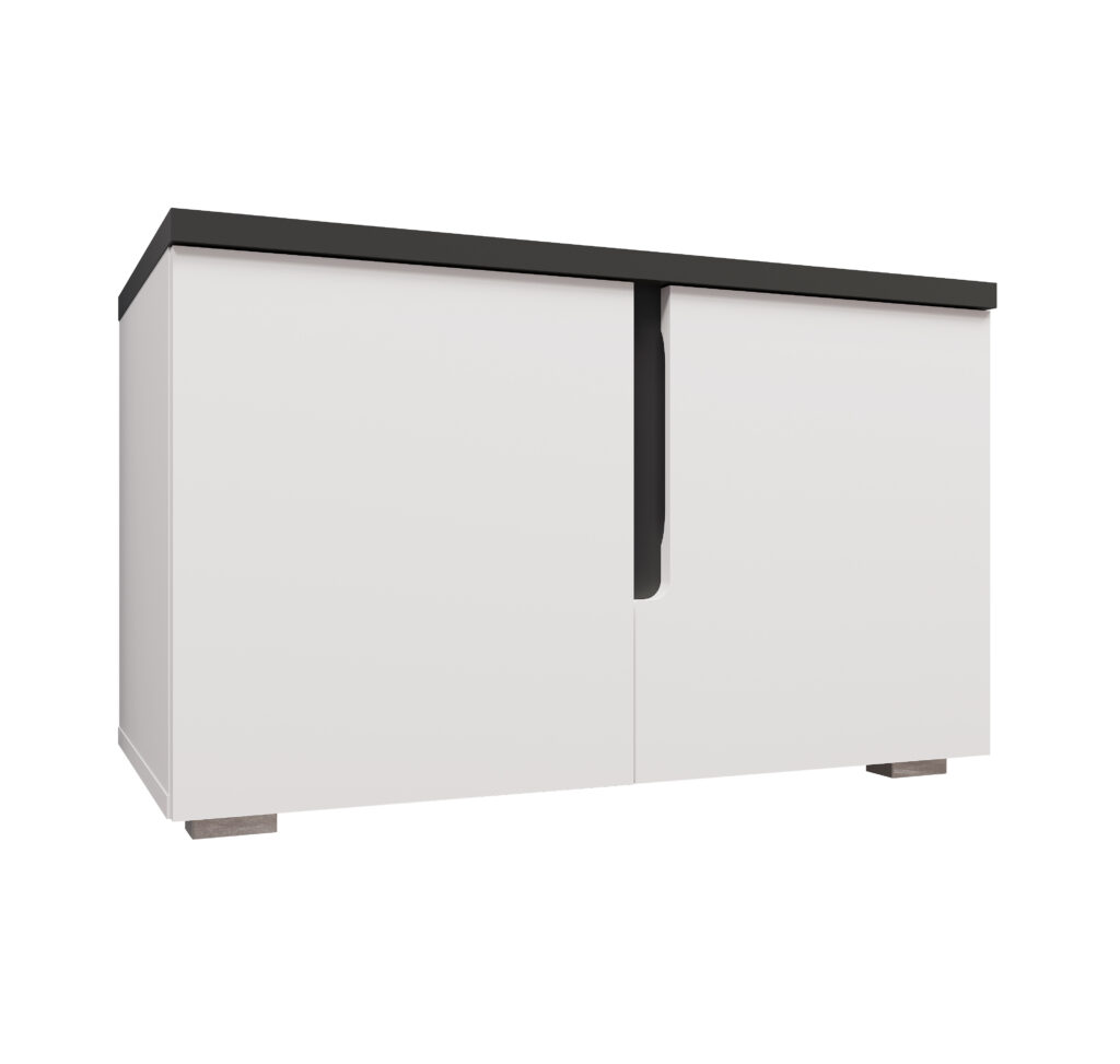 Практична та якісна тумба 2Д Джордан вдало поєднує в собі функціональність та незвичайний сміливий дизайн. Вона відмінно справляється не тільки зі зберіганням речей, але й ефективно виконує естетичну функцію – ваш будинок стає ще стильнішим. Виготовлений у трендових кольорах білий/антрацит.